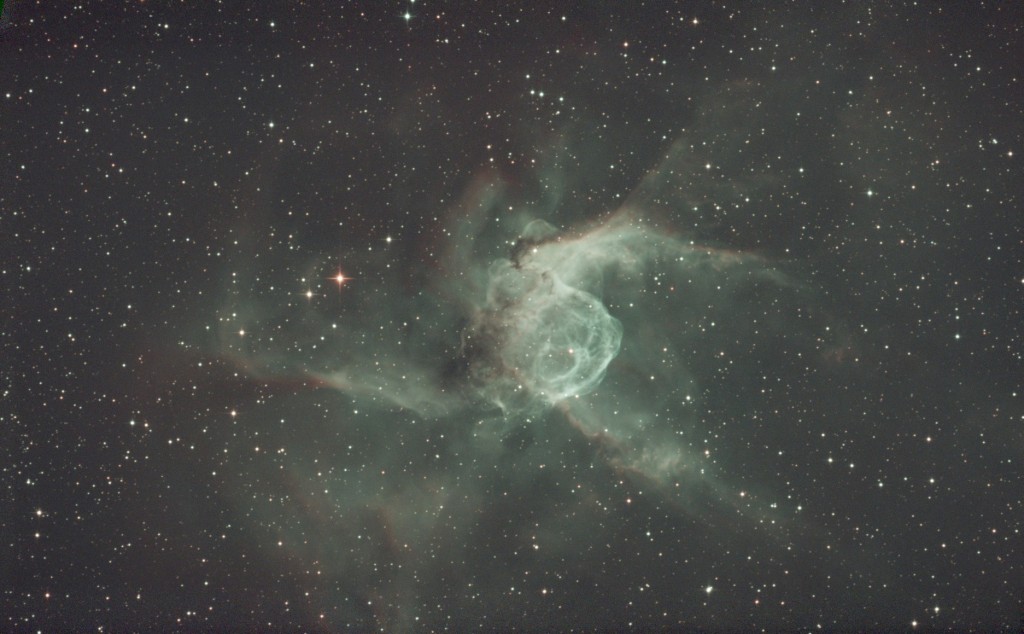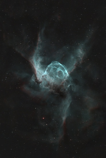 Dual narrowband capture of NGC2361 Thors Helmet with 3nm filter and the f5 8" Newtonian for a tight view.